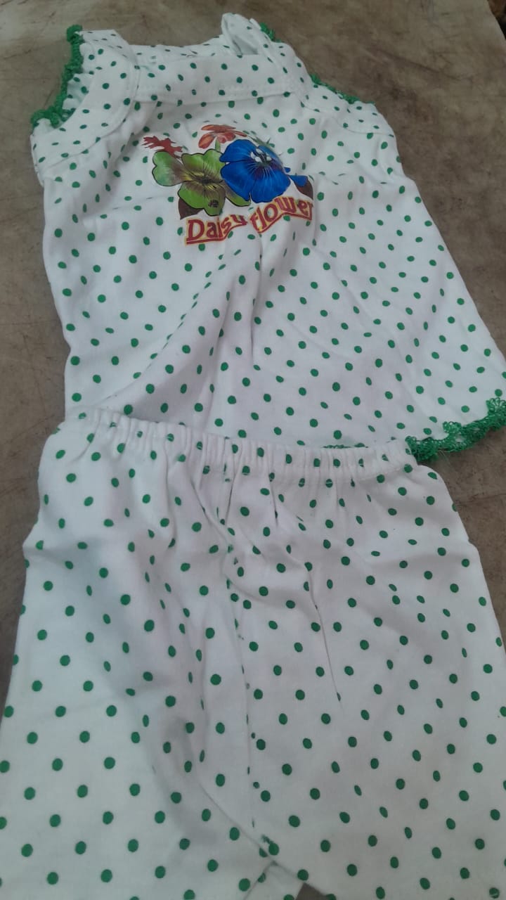 0 To 6 Months Baby Girls Top With Bottom Set White Green
