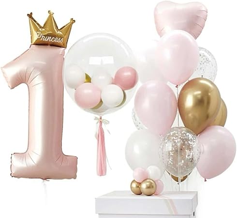 1St Birthday Baby Girl First Birthday Pink Balloon Number 1 24Pcs