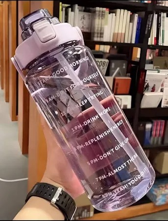 2000Ml Scale Marked Sports Plastic Water Bottle With Straw Purple