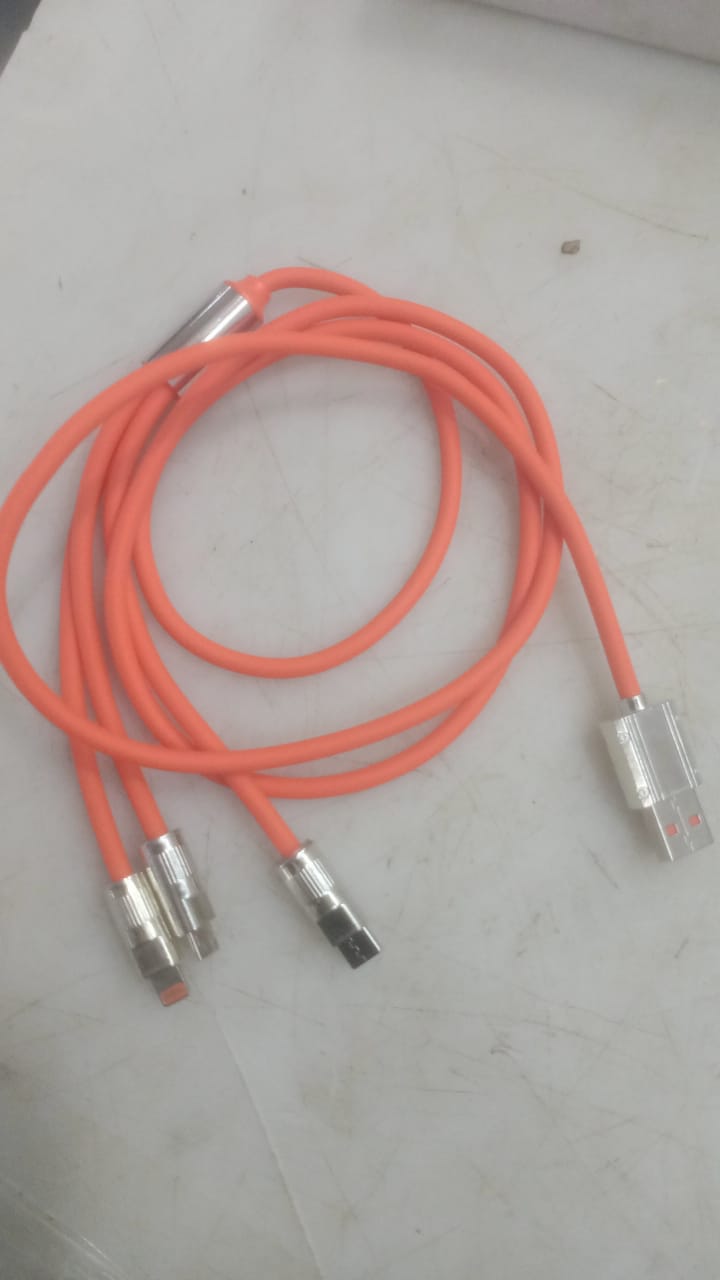 3 In 1 Multi Charger Cable Ultra Soft Silicon Metal 120W Fast Charging