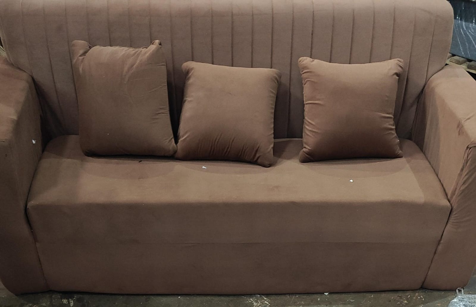 3 Seater Sofa With 3 Cushions Brown Without Foot