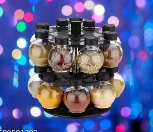 360 Degree Revolving Round Shape Transparent Spice Rack Black 16 Pcs
