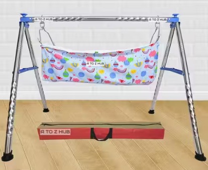 A To Z Hub Baby Swing Cradle Portable Folding Jhulaghodiyuwith Free Cotton Hammock Pink Colour