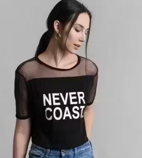 Abhi Collection Round Neck Printed Short Sleeves Net Top For Women Size Xl
