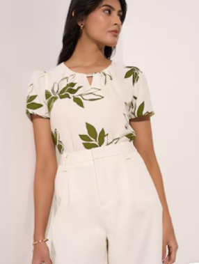 Annabelle Olive Printed Formal Half Sleeves Round Neck Women Regular Fit Top Size Xxl