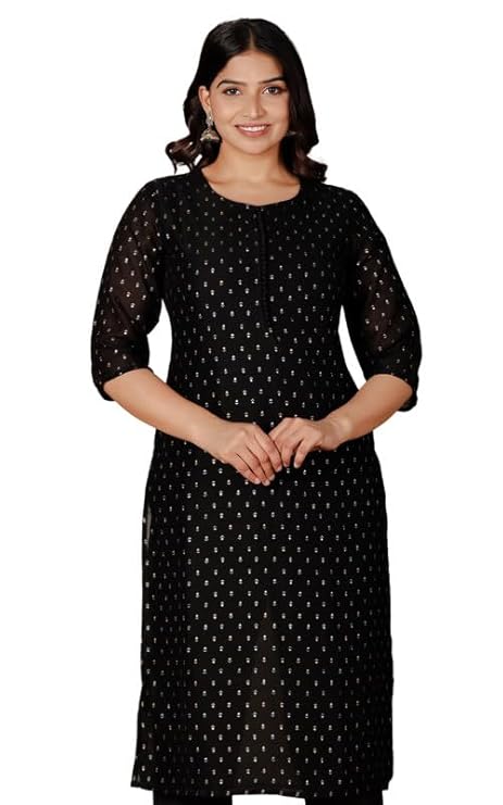 Aramya Chanderi Black Straight Solid Festival Wear Kurta For Women Size 2Xl