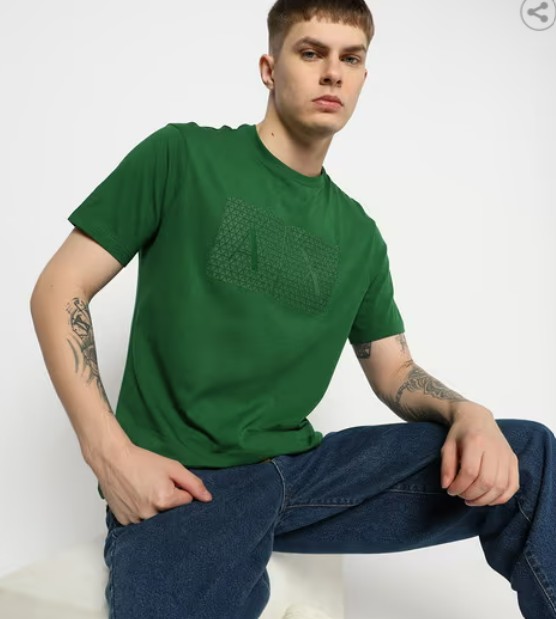 ARMANI EXCHANGE Men Brand Print Regular Fit Crew Neck T Shirt colour green size m
