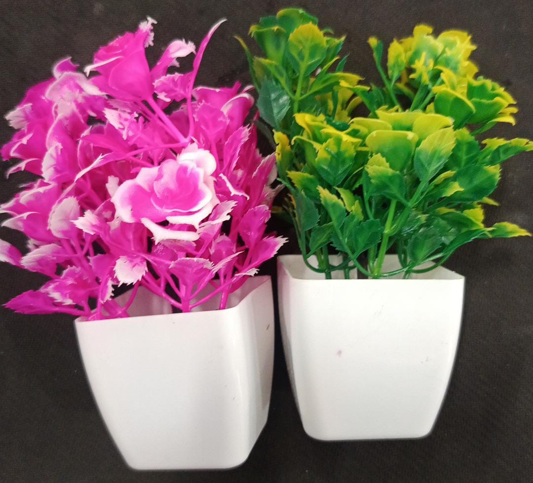 Artificial Flower Pot Pack Of 2 Colour Pink Green