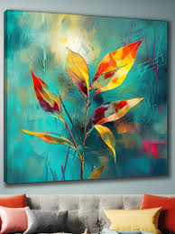 Aura Green Orange Floral Theme Canvas Wall Painting Size 23 X 18 Inches