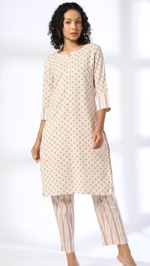 AVAASA MIX N MATCH Women Floral Print Straight Kurta and Pants Colour White Size M