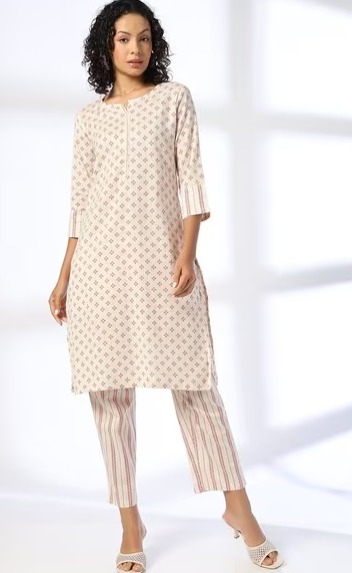 AVAASA Women Floral Print Straight Kurta and Pants Colour OffWhite Size M