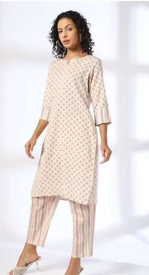 AVAASA Women Floral Print Straight Kurta and Pants Colour White Size L