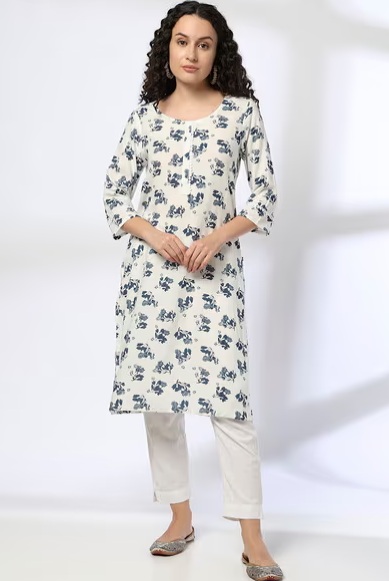 AVAASA Women Floral Print Straight Kurta white XXL