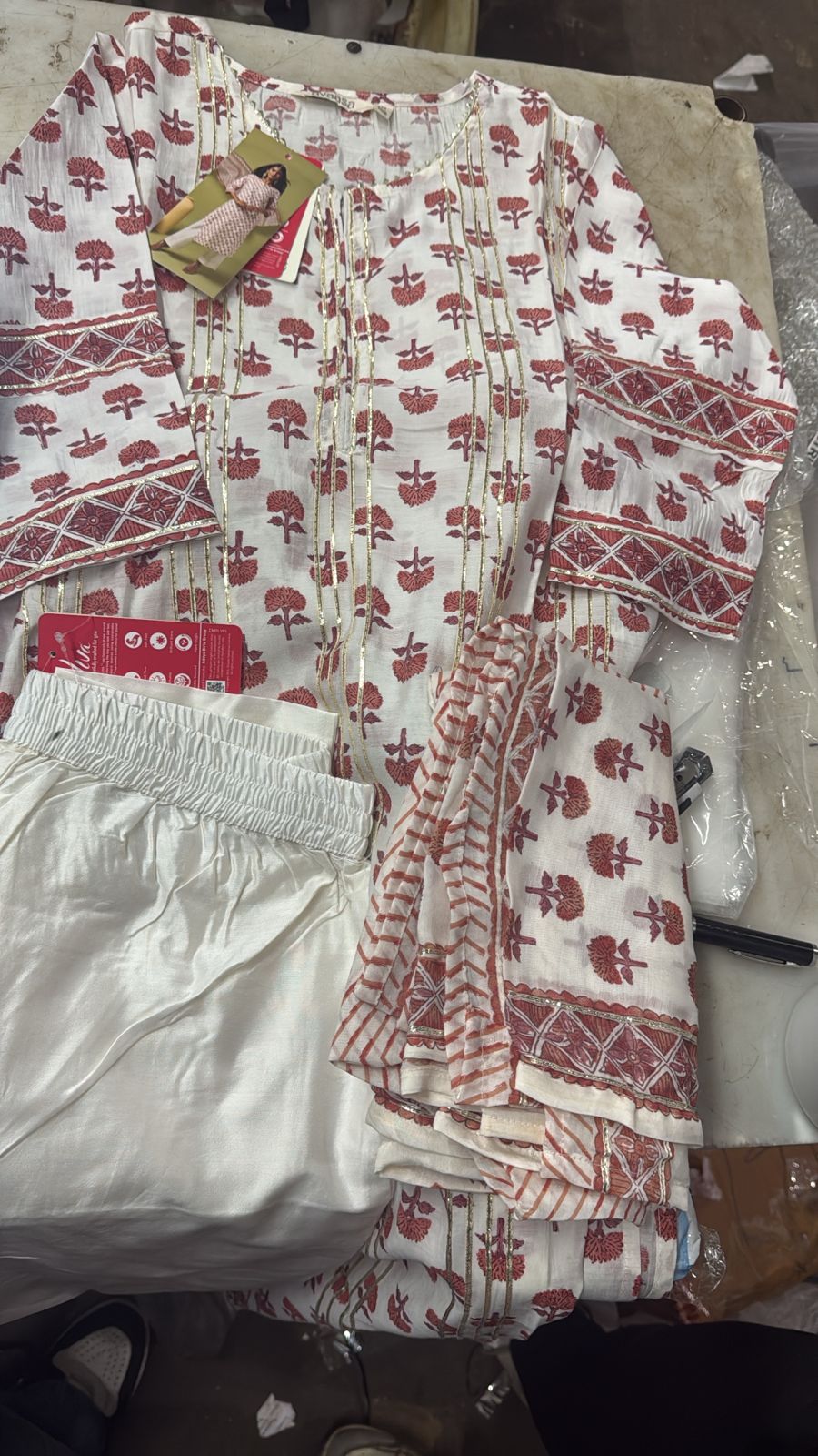 Avaasa Women Kurta Set Off White Color With Dupatta Size L