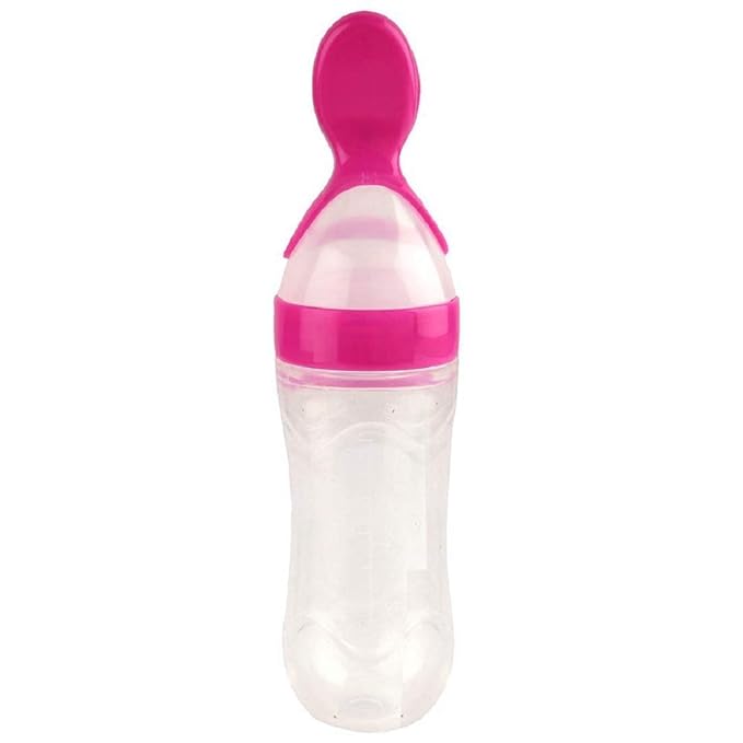 Baby Squeeze Food Grade Silicone Bpafree Spoon Bottle Feeder For Baby Feeding 90 Ml Pink Colour