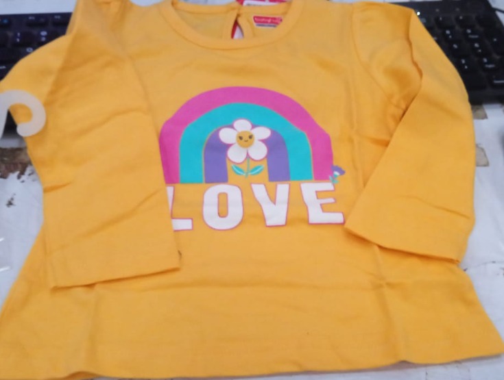 Babyhug Cotton Knit Half Sleeves TShirt Text And Rainbow Print Colour Yellow size 12 to 18 m