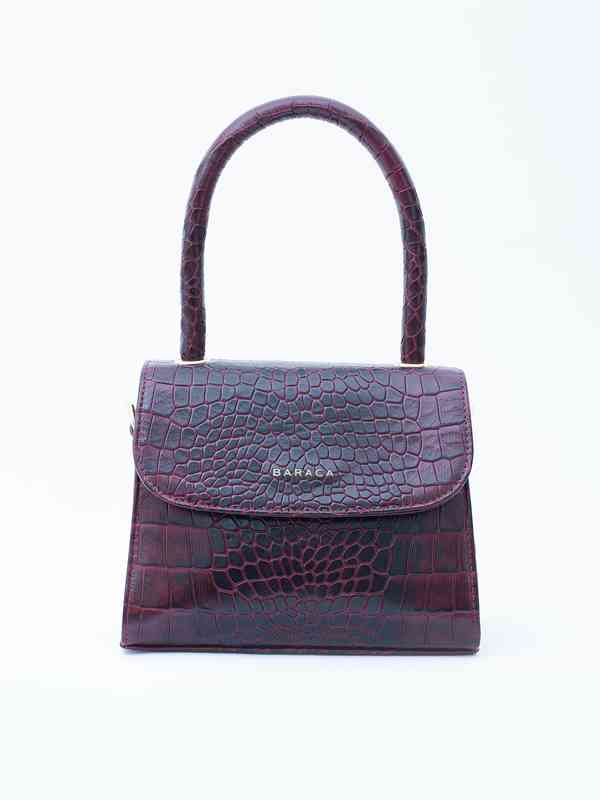 Baraca Flair Croco Animal Textured Leather Structured Shoulder Bag Maroon