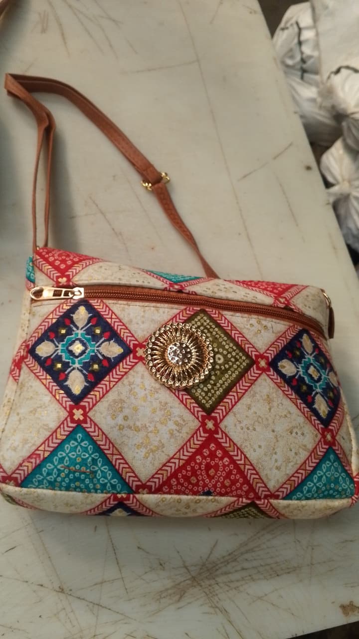 Beige And Multicolour Printed Handbag For Women