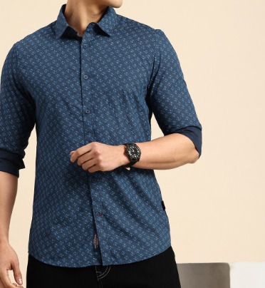 Being Human Pure Cotton Slim Fit Opaque Printed Casual Shirt BLUE 2XL