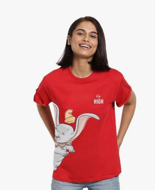 Bewakoof Womens Graphic Printed 100 Cotton T Shirt Boyfriend Fit Round Neck Half Sleeve red S IZE