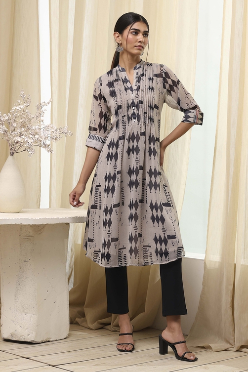 Biba Grey Printed Pleated ALine Kurta for womens size 32