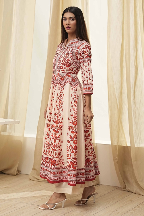 Biba White and Rust Cotton Printed Anarkali Kurta Set for womens size 42