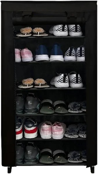 Black 6 Layer Non Woven Fabric Rectangle Shoes Rack