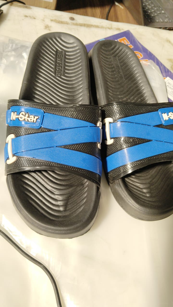 Black And Blue Color Slippers For Women Size 9