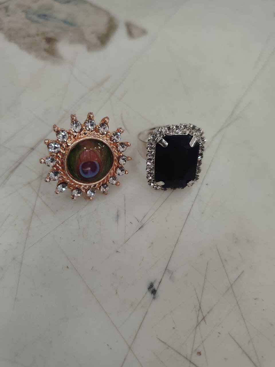 Black And Golden Round Adjustable Ring For Women Pack Of 2