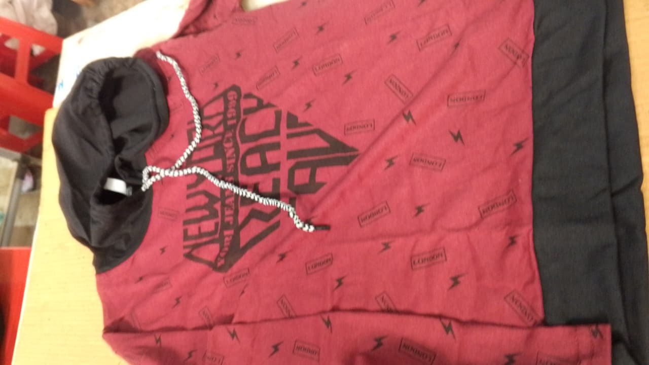 Black And Maroon Printed Sweatshirt Hoodie For Kids Size 12 To 13 Year