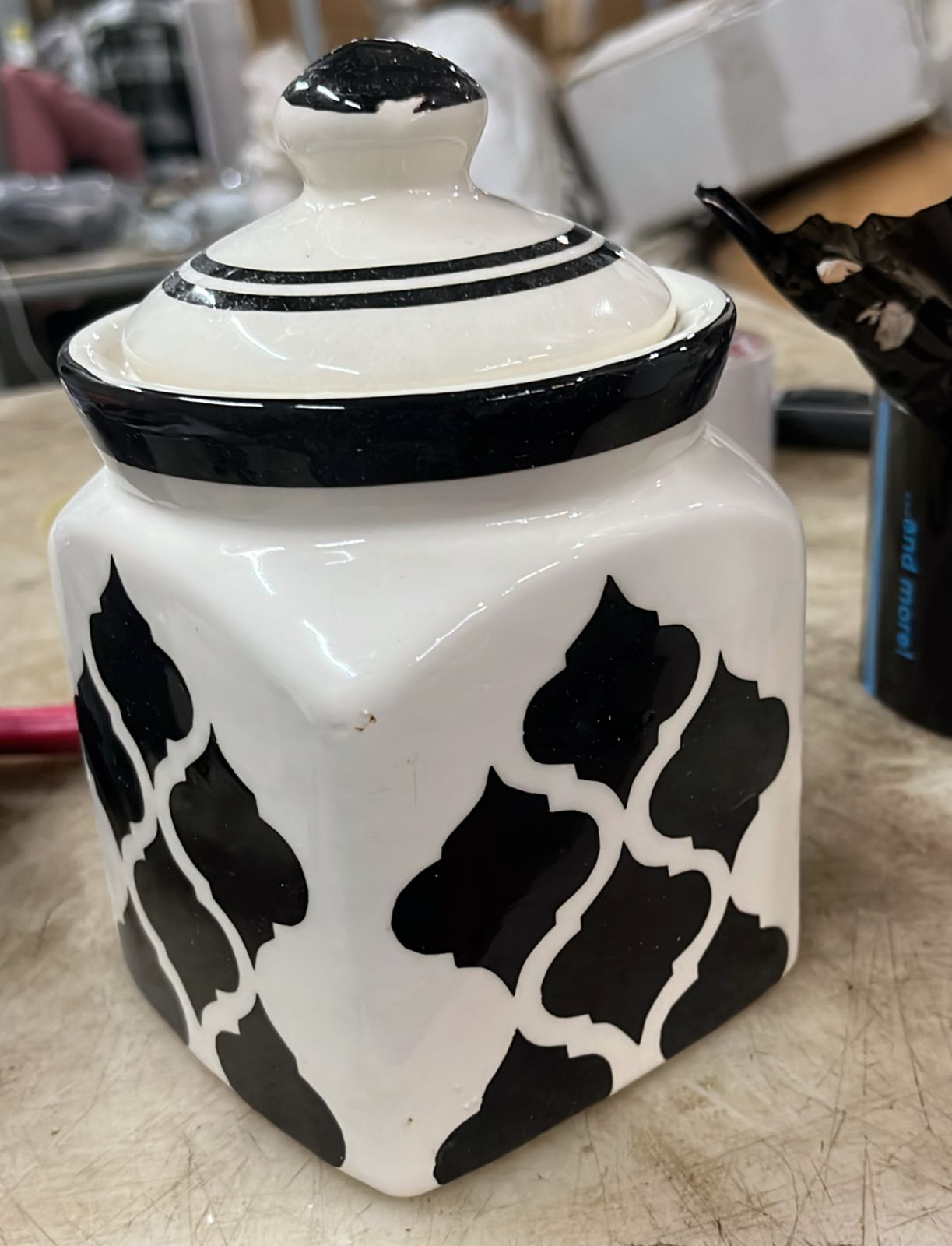 Black Chidi And White Hand Painted Ceramic Jar With Lid 500Ml