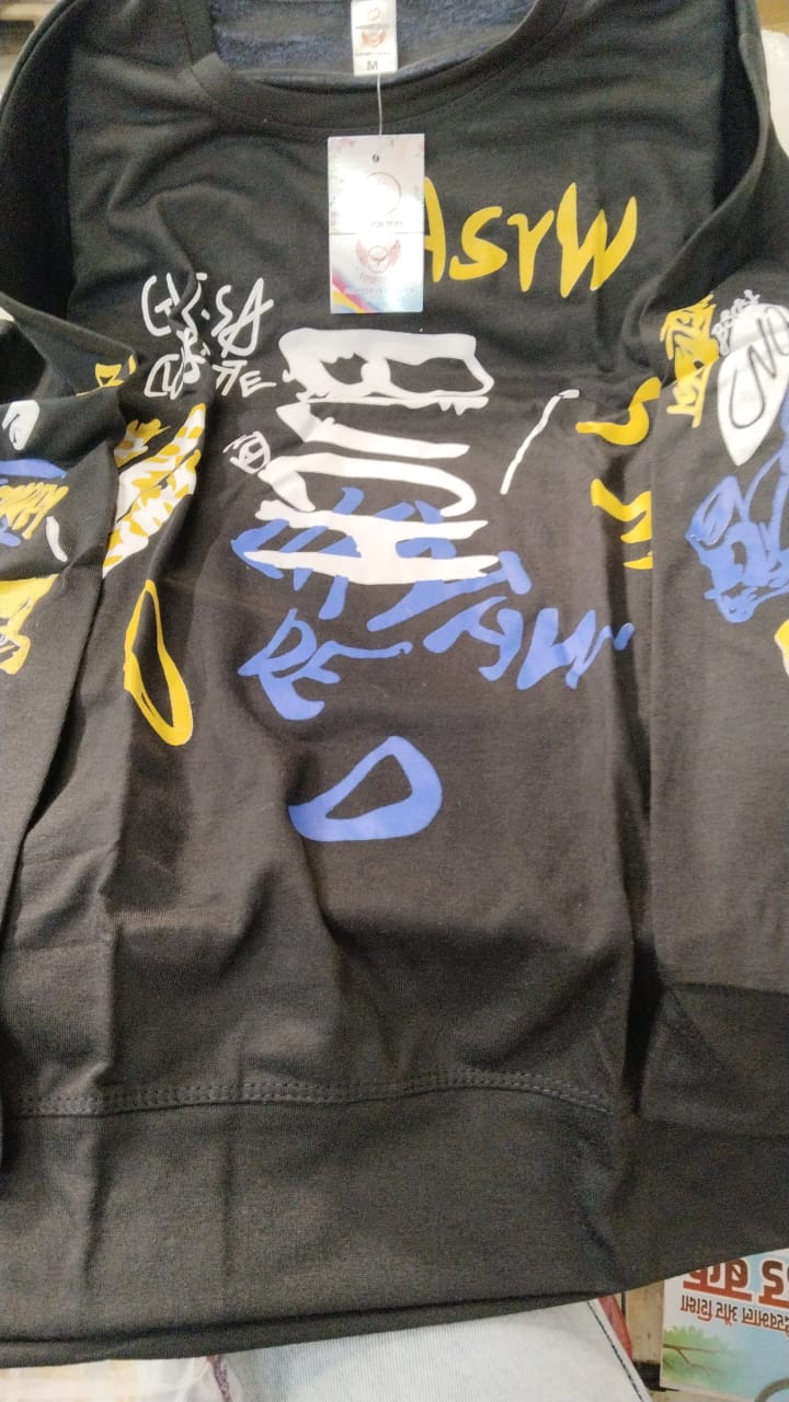 Black Color Printed Full Sleeves T Shirt Or Women Size M