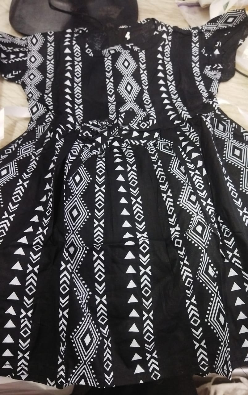 Black Color White Printed Cotton Kids Girls Frock Size 2 Y