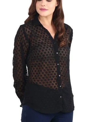 Black Color Women Transparent Dot Design Shirt Size 4Xl