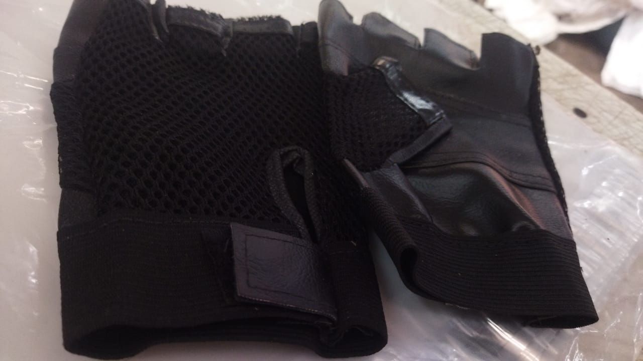 Black Colour Palm Support Grip Leather Gym Gloves 1 Pair