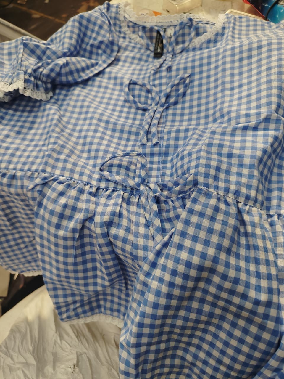 Blue And White Checked Short Frock Top For Women Size L