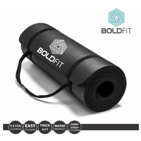 Boldfit Nbr Material Yoga Mat With Carrying Strap 10 Mm Black