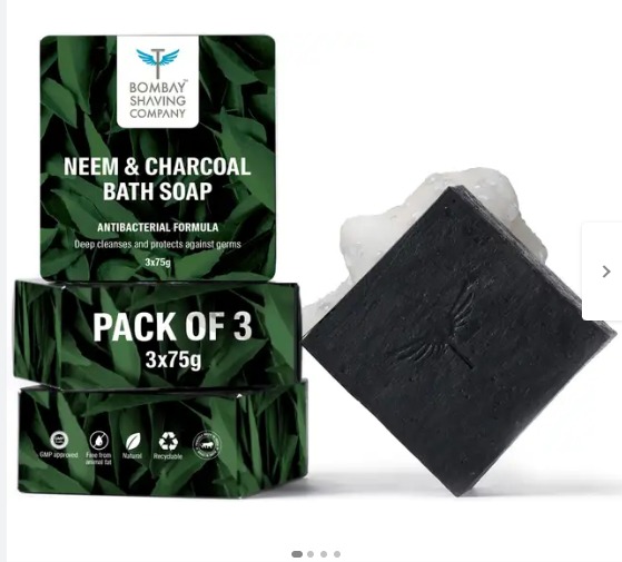 BOMBAY SHAVING COMPANY Men Neem and Charcoal Bath Soap pack of 3 75 g
