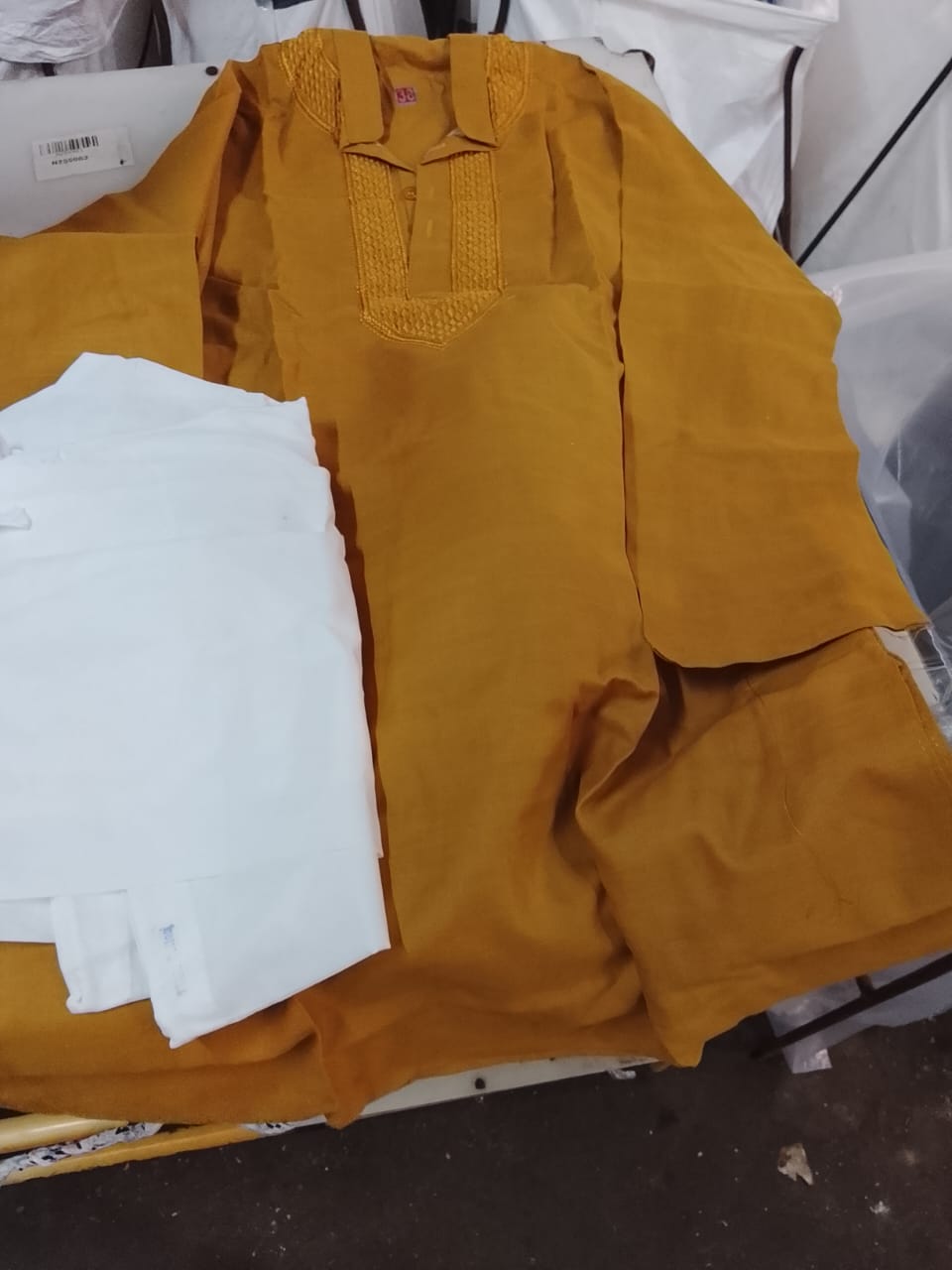 Boys Plain Kurta Pajama Suit Set Yellow And White Colour Size 38