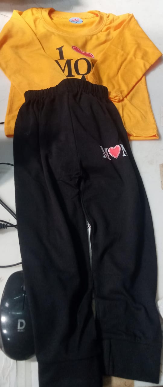 Boys Yellow Printed T Shirt And Black Bottom Size 12 To 18 Month