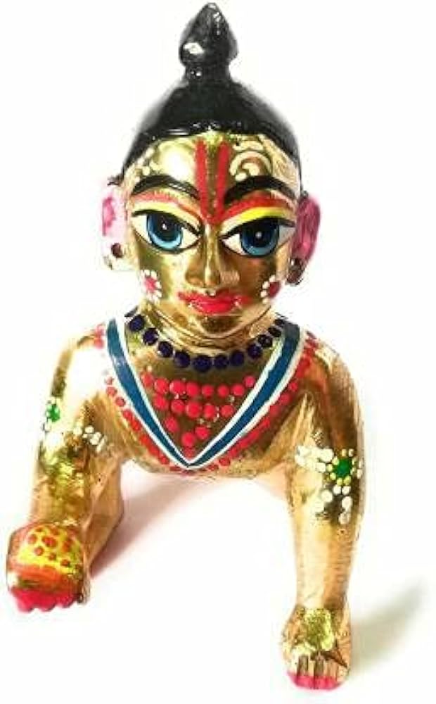 Brass Mart Pure Bras Hand Painted Laddu Gopal Ji Idol Statue 2 Inch