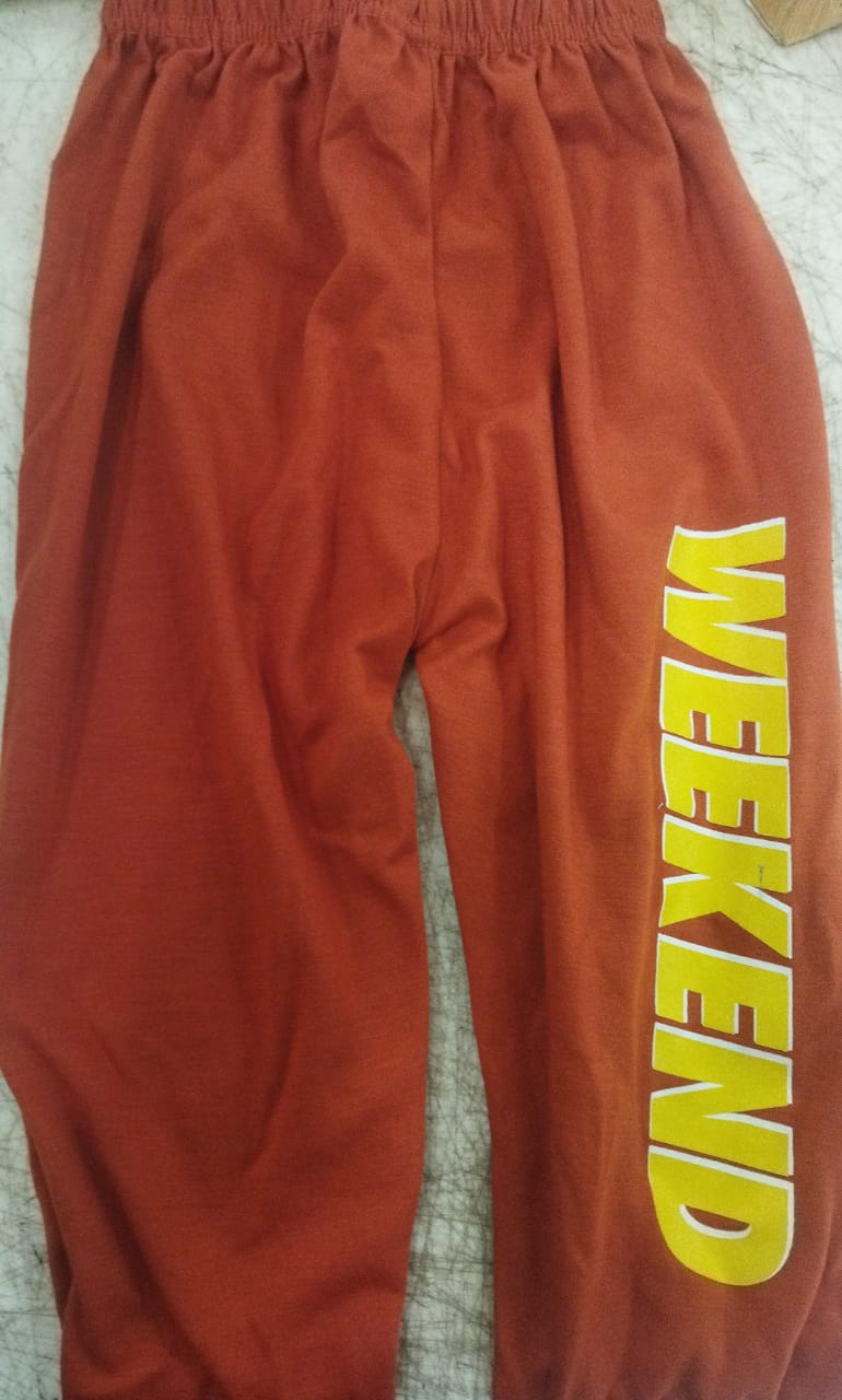 Brown Color Cotton Weekend Printed Trousers For Kids For 2 Yr