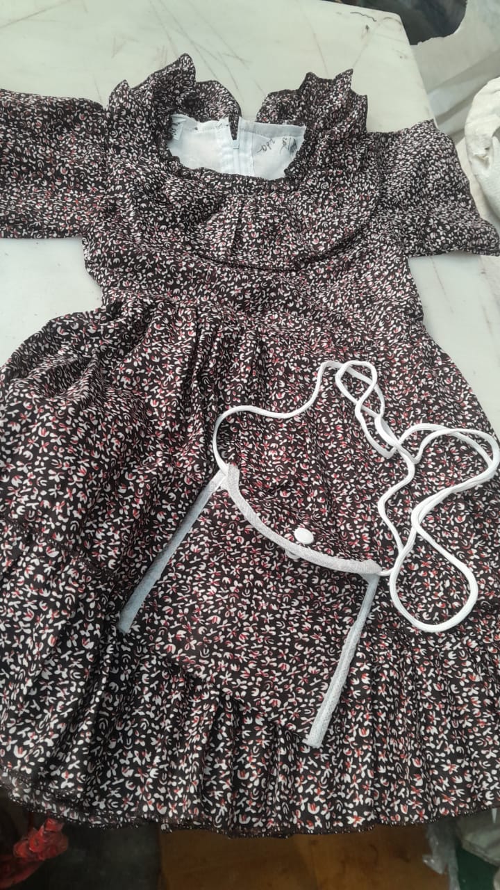 Brown Colour Printed Frock With Bag For Kids Girl Size 22