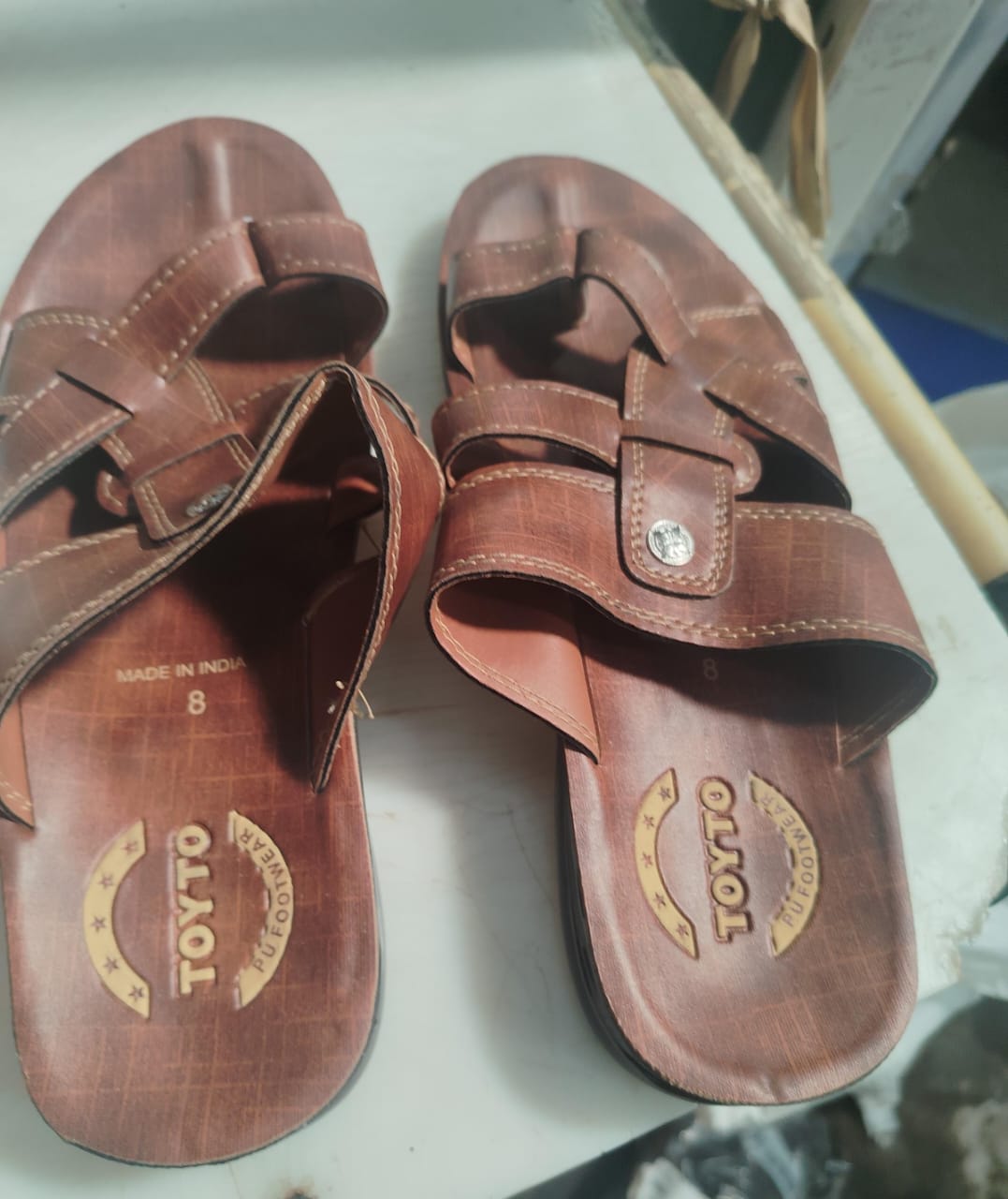 Brown Men Toyto Pu Gents Slipper Size 8