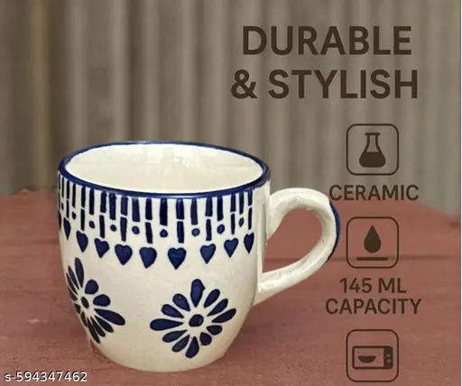 Ceramic Blue Jhalar Design Cup Treble And Long Lasting Tea Cup Pack Of 6