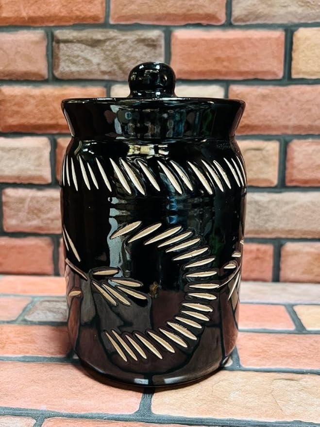 Ceramic Pickle Jar Set With Lid Black Kutting Jars 1000Ml Black Jar Pack Of 2