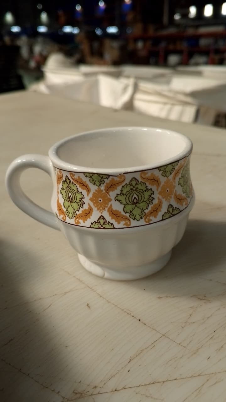 Ceramic White Printed Cup For Tea Coffee Pack Of 6