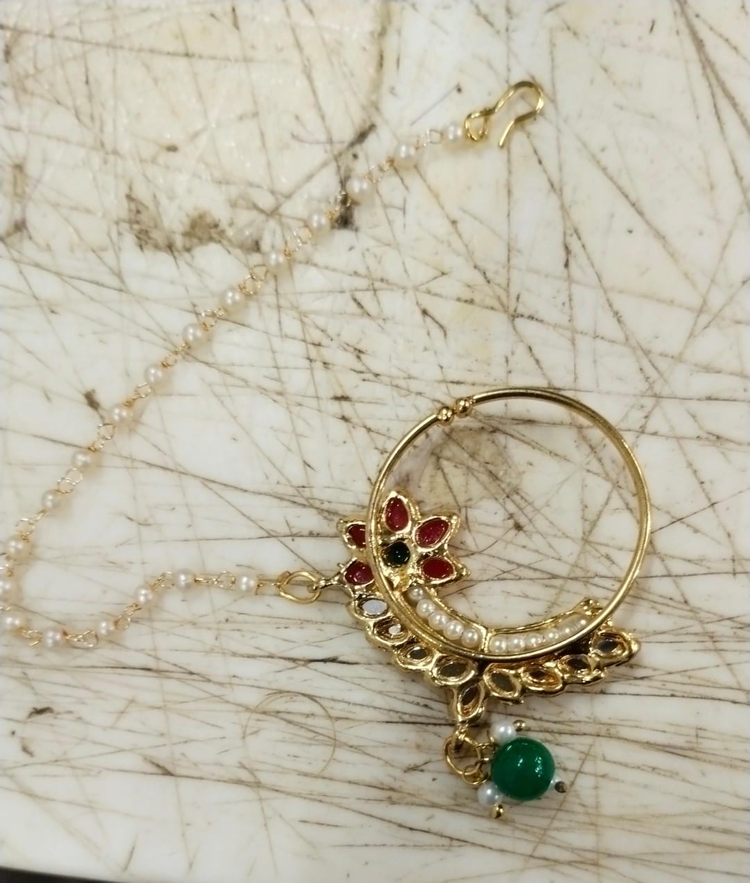 Charming Treasures Traditional Pearl Chain Nose Ring Nath Nathiya Nathni For Women And Girls