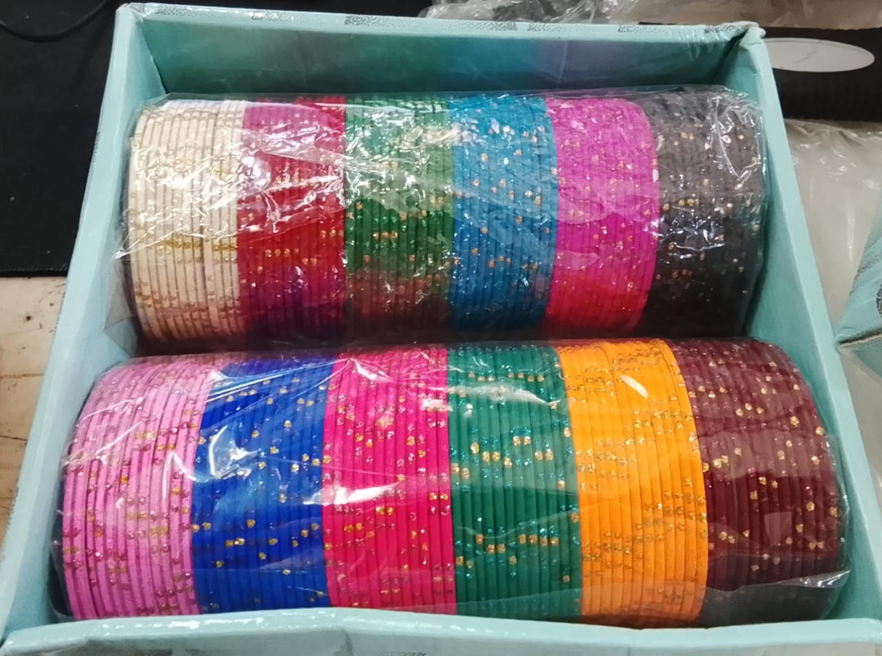 Colorful Collection Metal Bangles With Zari Pods In 12 Color For Girls And Womens Pack Of 144