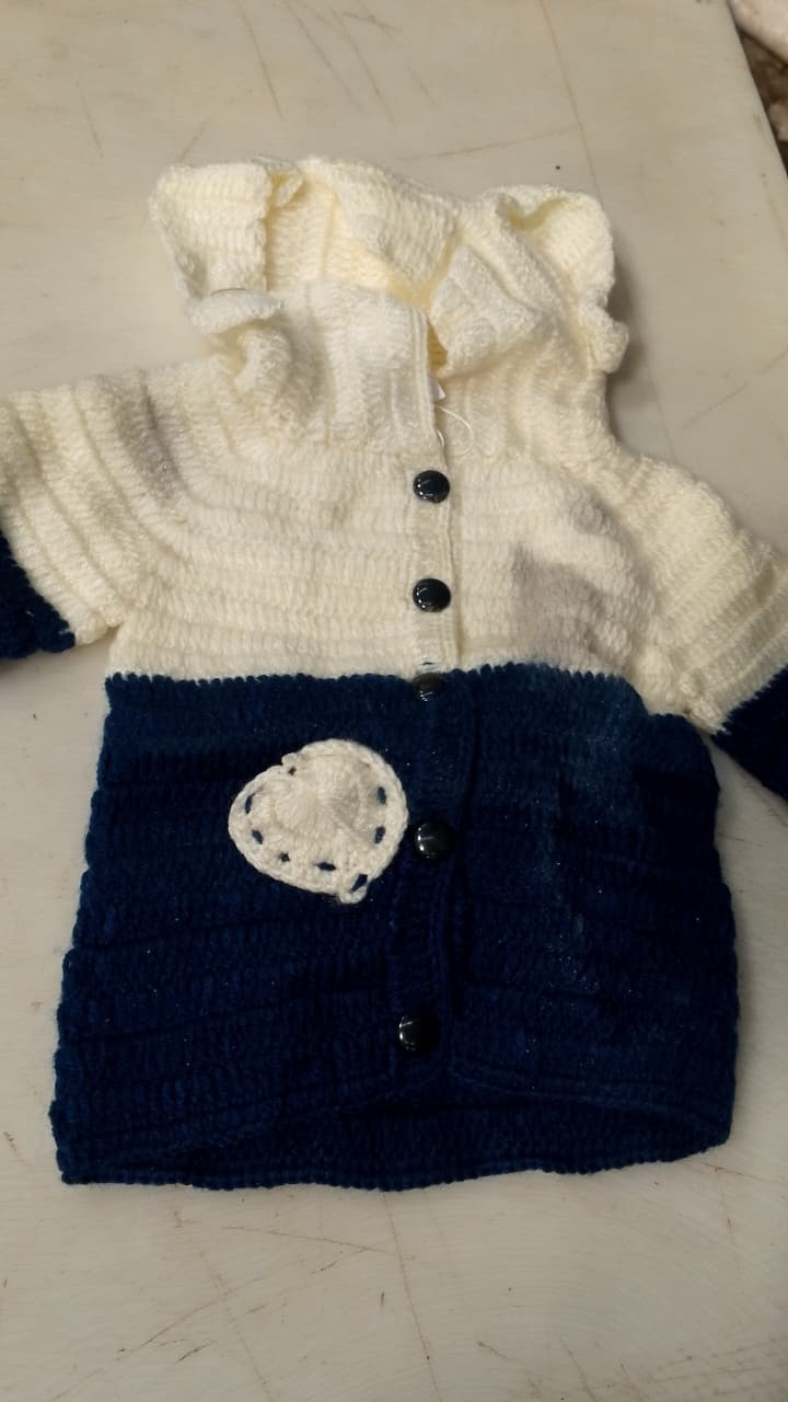 Cream And Blue Winter Sweater For Kids Size 3 To 6 Month